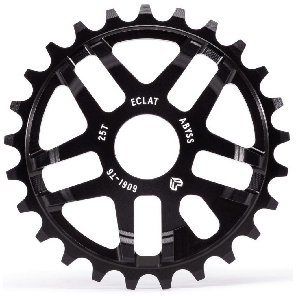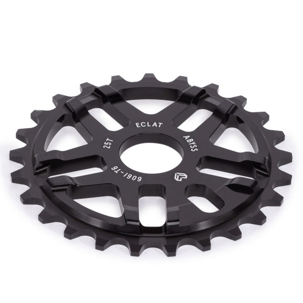 Eclat Abyss Sprocket – Ο Abyss έχει κατασκευαστεί για να street riding, είναι 7mm παχύς και το εξωτερικό προστατεύει στα Crank arm/ sprocket Grinds. Δεν στραβώνει και μπαίνει σχεδόν σε όλες τις πεταλιέρες aftermarket και σε άξονες από 19mm, 22mm, 24mm. Το υλικό κατασκευής είναι αεροπορικού τύπου αλουμίνιο 6061 Τ6 για να μείνει σε χαμηλό βάρος ενώ παράλληλα δίνει ένα πιο ωραίο Look στο BMX.