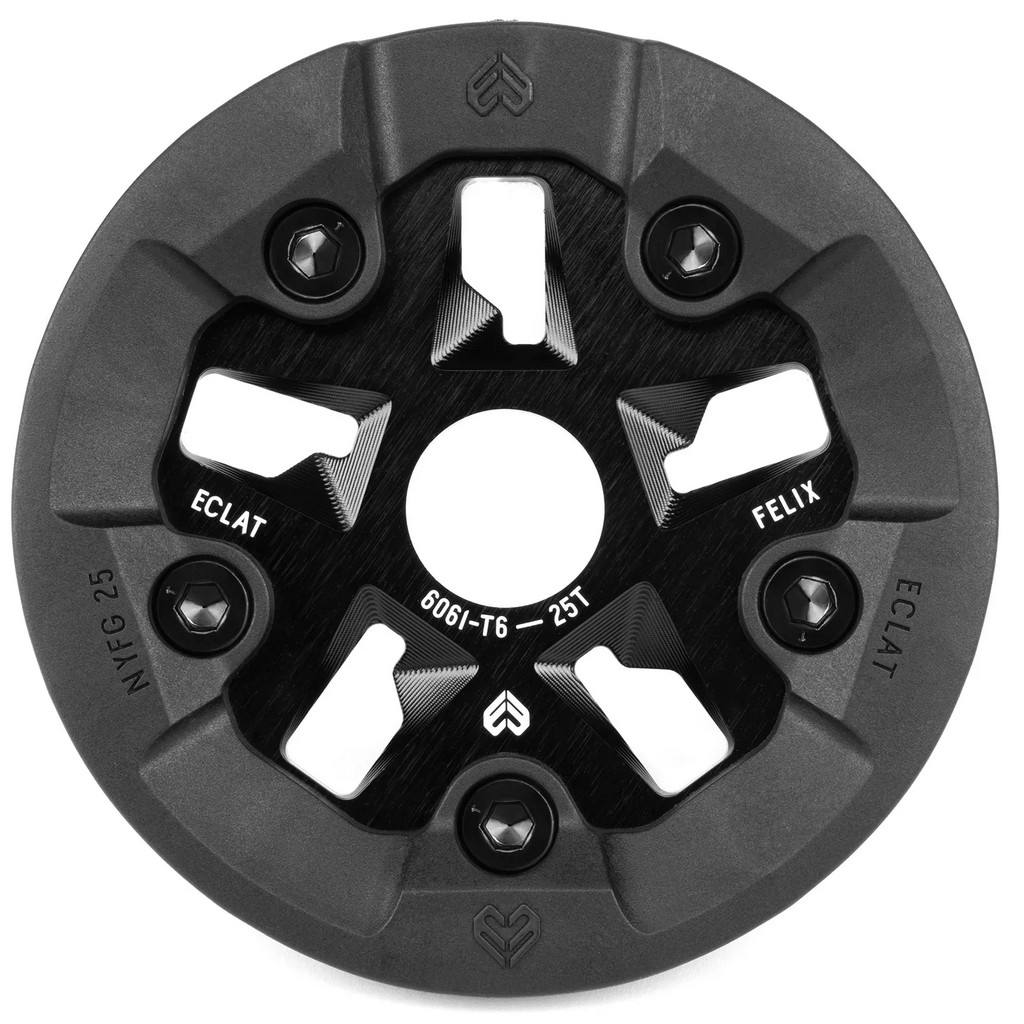 Felix Prangenberg s new signature guard sprocket was born from the same removable and replaceable concept as his previous Wethepeople sprocket. Now featuring a super thick 11mm thick nylon-fibreglass guard for a lighter weight and friction-free grinding, both the sprocket has 5 rotation points allowing you to get more life from your sprocket than ever before. Secured to the sprocket using 5 direct mount bolts, the new Felix Guard sprocket is designed to keep on going when things get rowdy. Replaceable guards sold separately.