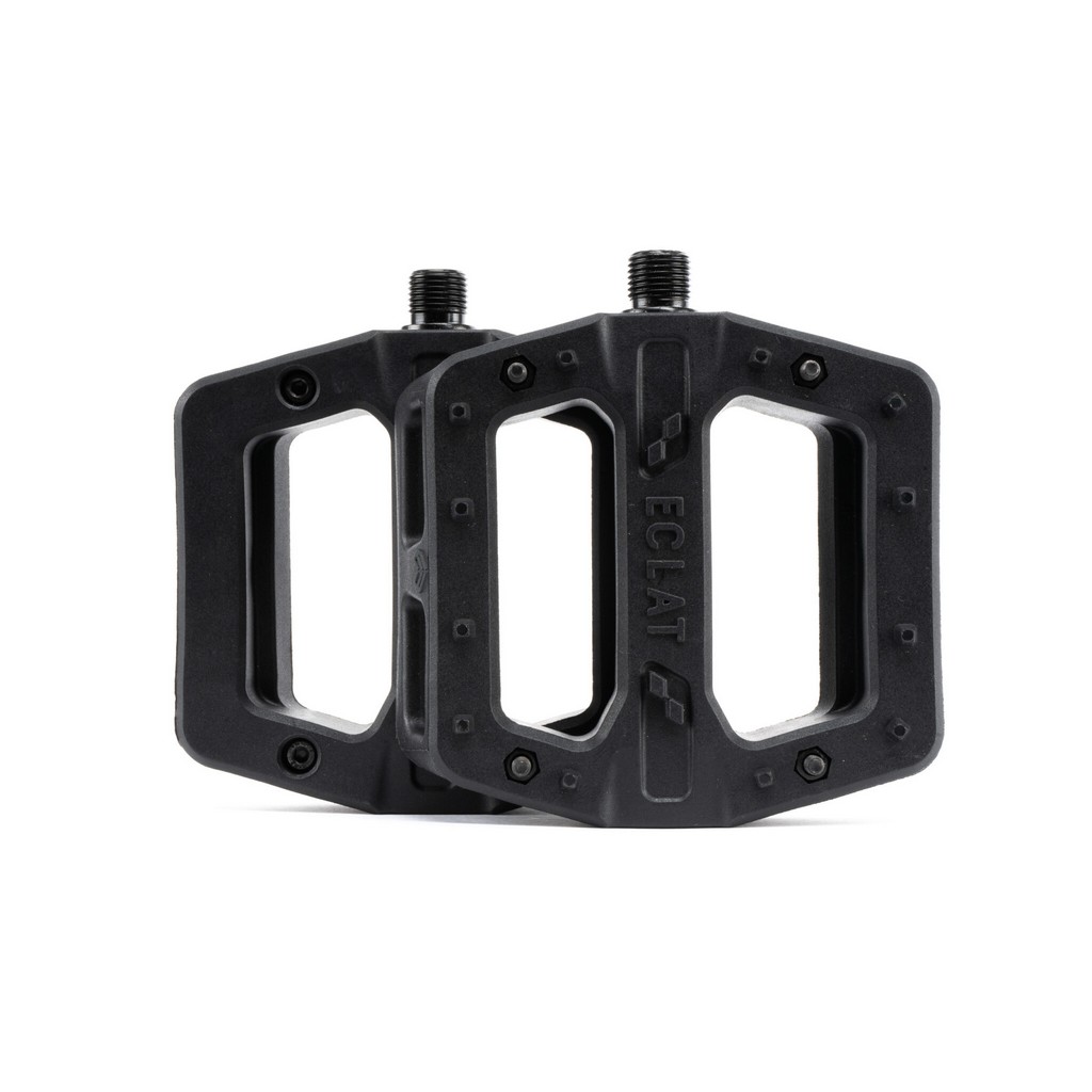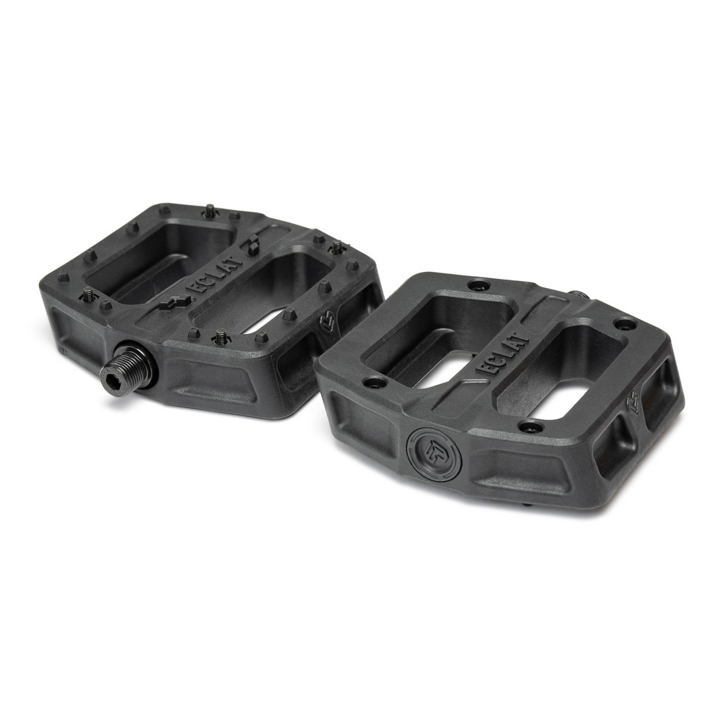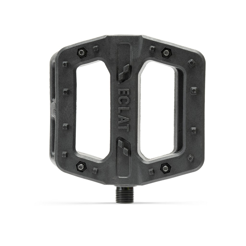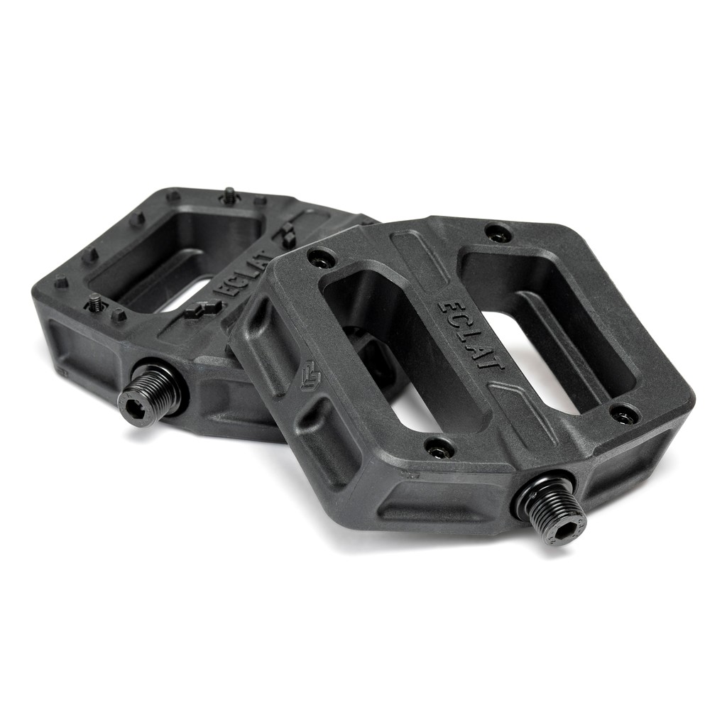 The eclat “Juggernaut” Pedals come with an extra-large platform, oversized axle, removable steel pins and reinforced body. The eclat “Juggernaut” Pedals are the first asymmetrical pedals from eclat. They come with plastic pins and removable steel pins on one side and no pins on the other side, which ensures that the pedals can be used for grinding for longer.