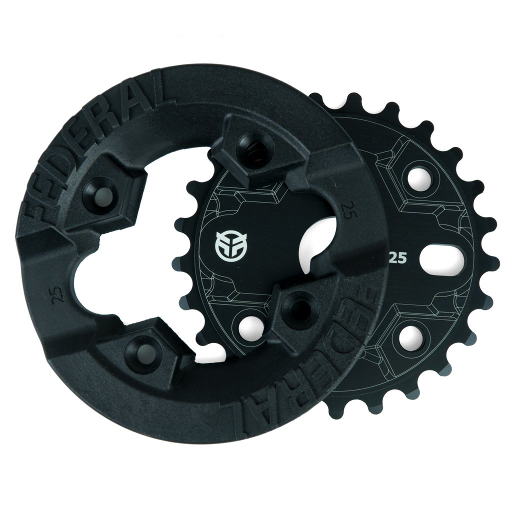 Federal Impact Guard Sprocket. Αυτός ο δίσκος είναι κατασκευασμένος από 2 διαφορετικά μέρη (Hard fiberglass και 6061 T6 αλουμίνιο) και δένονται μεταξύ τους με 4x allen bolts και επιτρέπει στο rider να αλλάζει μόνο το Fiberglass όταν αυτό χρειαστεί. Ο Federal Impact έχει πάχος 8mm και προσαρμόζεται σε όλες τις πεταλιέρες του εμπορίου!!!