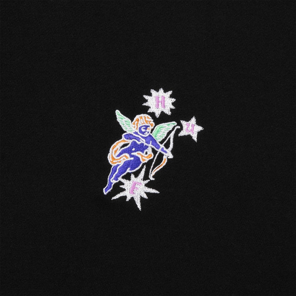 The Huf Cupid Hoodie features a handy kangaroo pocket, adjustable drawstring hood and brushed poly-cotton fleece fabrication to keep you comfortable in iconic Huf style. Huf Embroidered branding on the front chest.