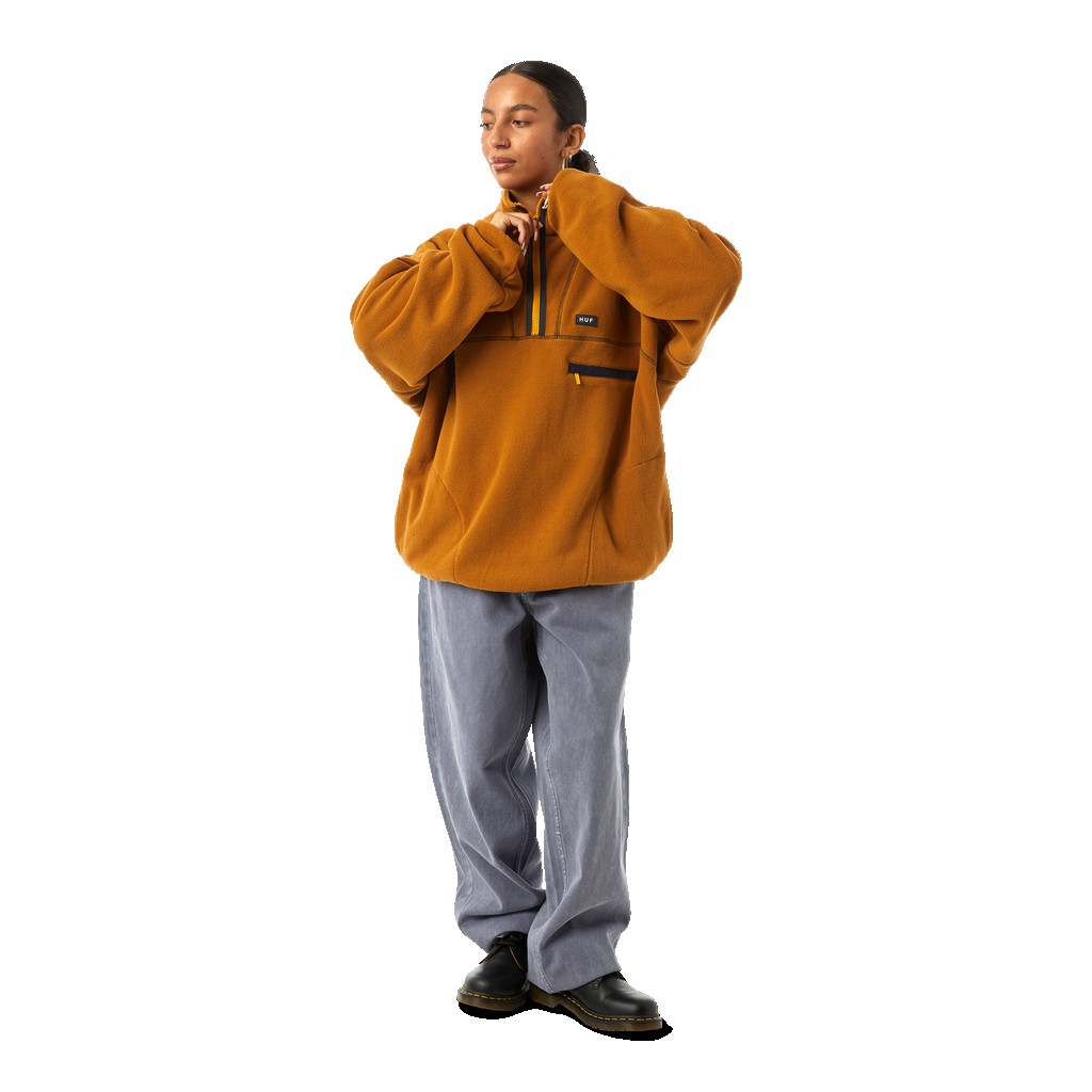 The best of ‘90s trail gear gets a modern makeover with rustic colorways and HUF heritage aesthetics. The Elysian Quarter Zip Fleece offers a cushy polar fleece construction with contrast stitching and classic rubber applique HUF artwork.