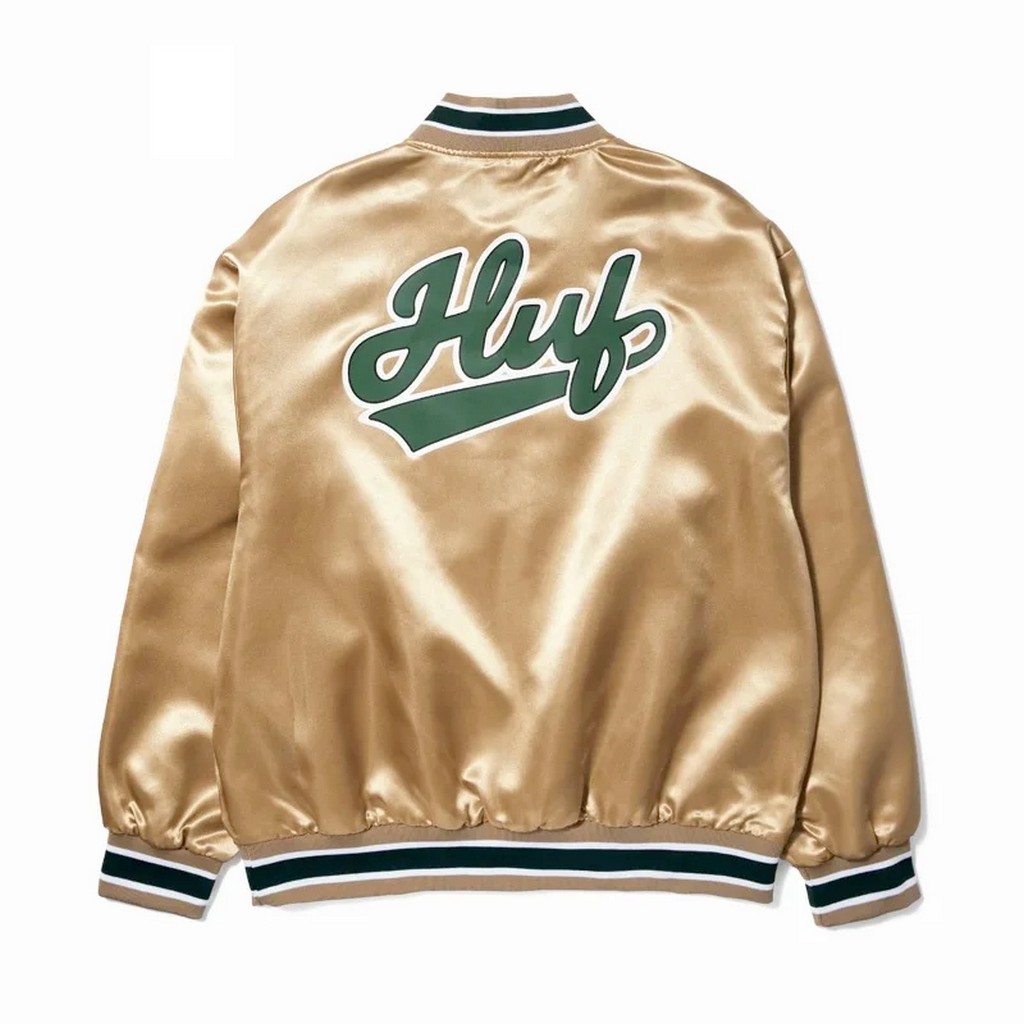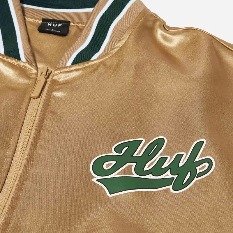 Huf Pop Fly Satin Baseball Jacket (tan)