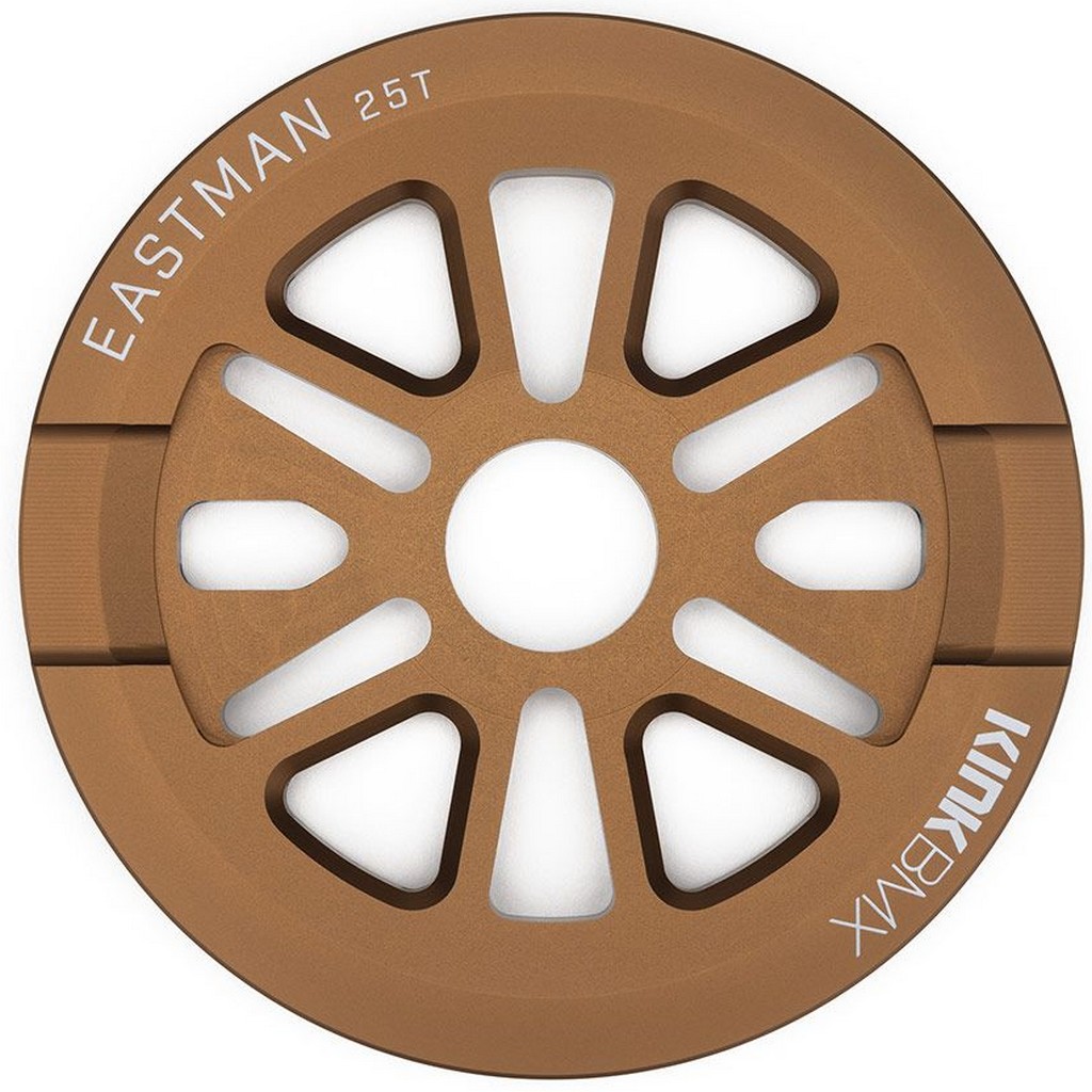 Kink Eastman Guard Sprocket — Ο Eastman είναι ο νέος Full guard Δίσκος της Kink σχεδιασμένος για χτυπήματα και grind με Fully CNC Machined 6061-T6 αλουμίνιο, ενώ διατηρεί την αλυσίδα πάντα καινούργια! Το εσωτερικό του έχει ένα συμμετρικό και ομαλό σχήμα για να ταιριάζει με όλες τις πεταλιέρες του εμπορίου! Υπάρχουν 2 rotations για να τοποθετηθεί αναλόγως το style και την εξτρά ανθεκτικότητα του.