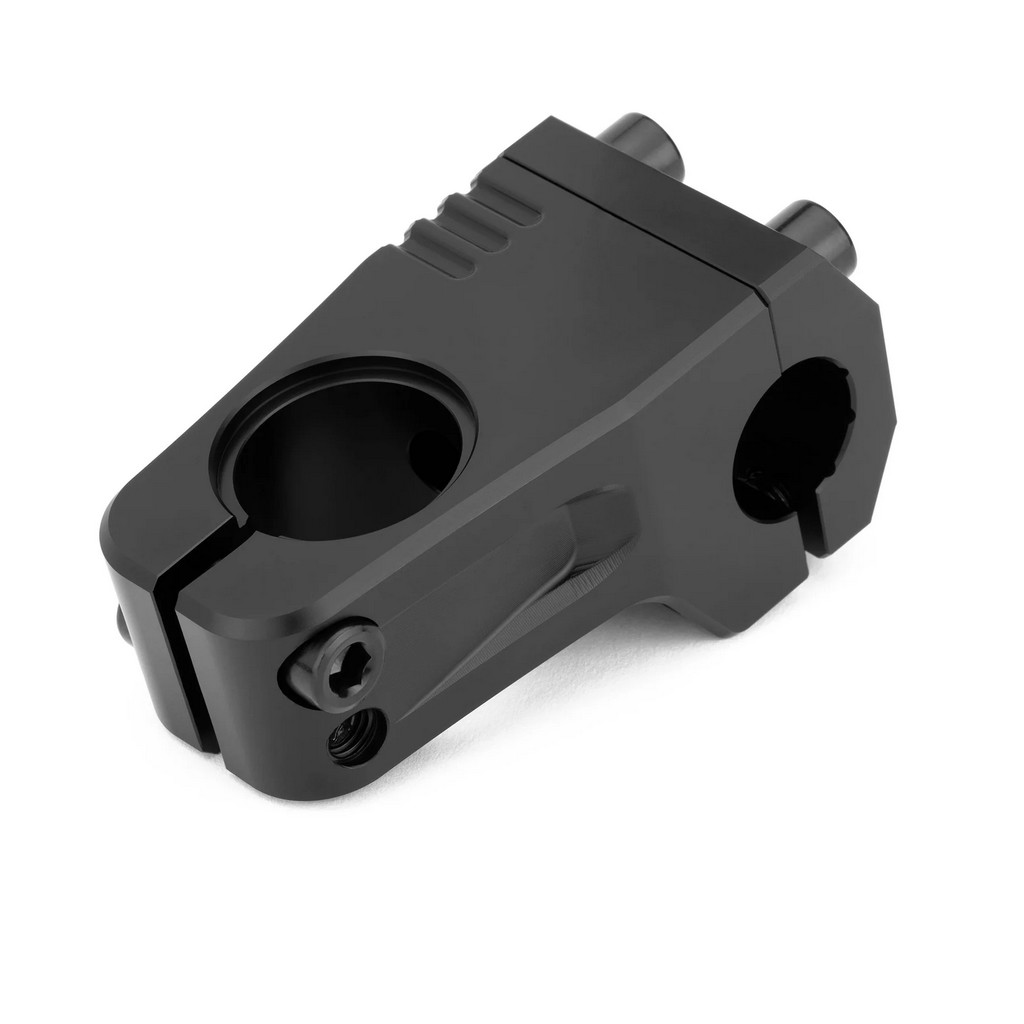 The Kink Track stem is a modern take on the classic frontload design. This fully CNC machined stem features a slightly contoured body profile, relieved outer walls to shave off some of the weight, an engraved KINK logo in the cap, and a recessed fork cap bolt design for a clean look. Instead of tightening the stem cap down in the traditional star pattern, the top two bolts tighten down fully first, giving the top of the stem a totally clean and flush look, before tightening the lower two bolts down. Internally machined grooves inside the stem cap and the oversized bolts provide plenty of clamping power to ensure your bars stay in their place.