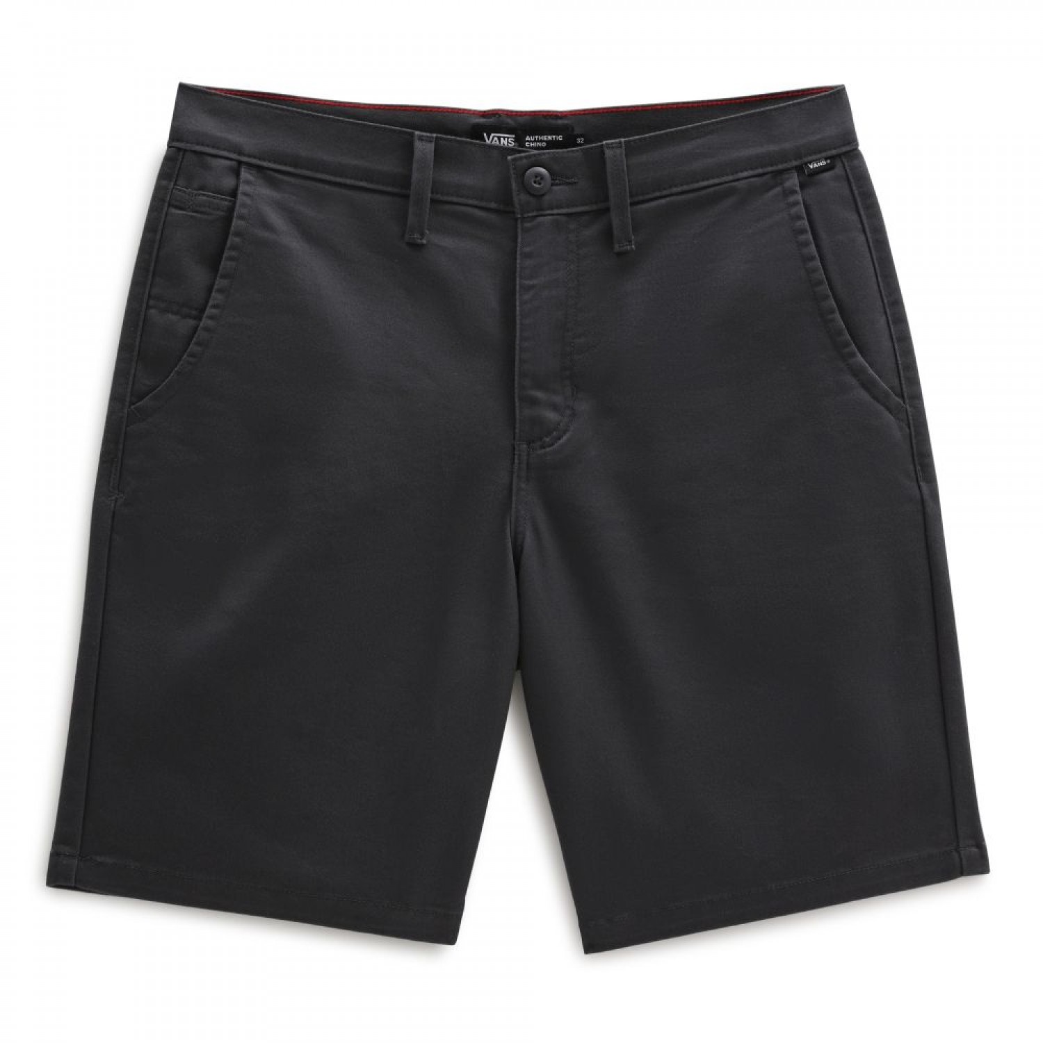 Authentic Chino Relaxed Short – Classic chino styling includes front hand pockets with a new coin pocket on the right, rear welt pockets with button closures, and multiple embroidered Drop V bartacks. The new “V” belt loop detail on the back waistband and checkerboard twill taping inside the fly give this chino short an iconic Vans look and feel.