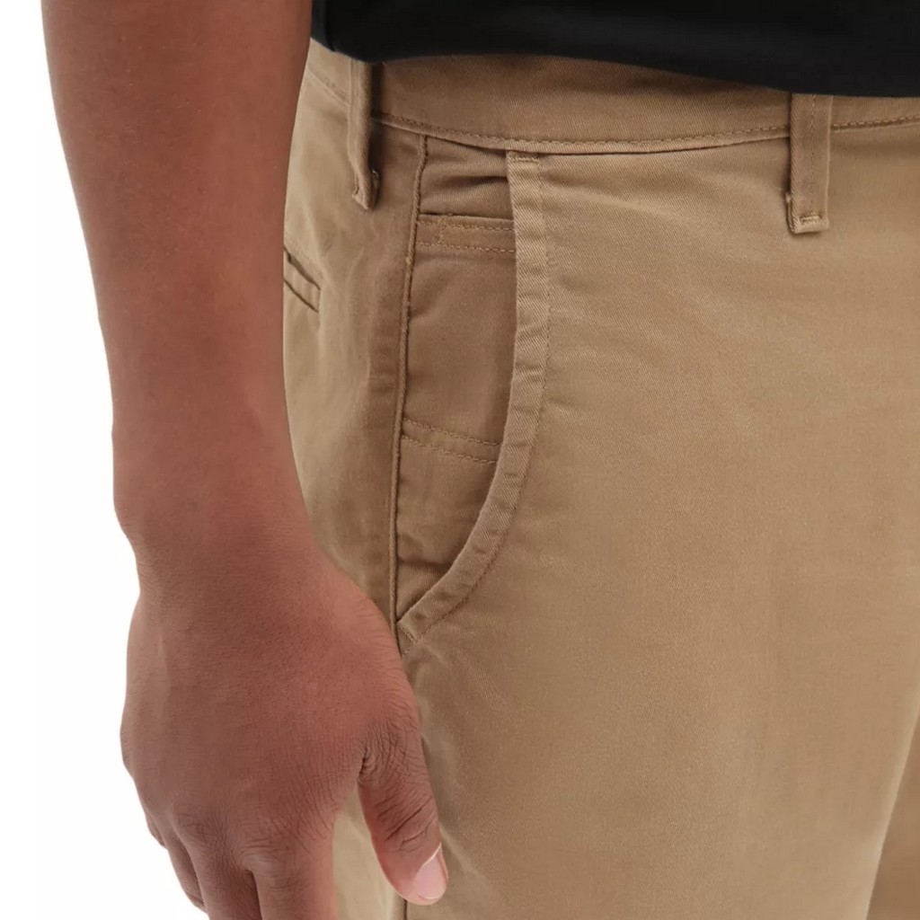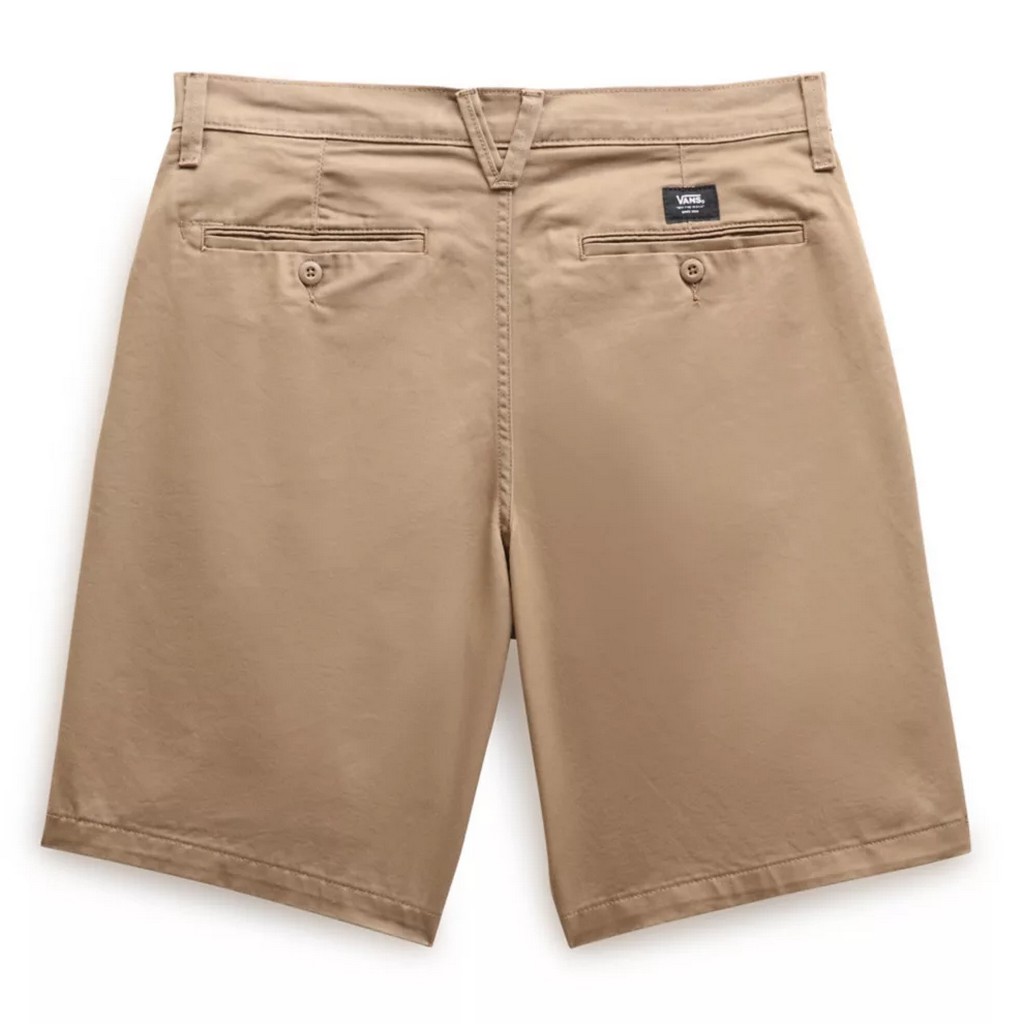 Authentic Chino Relaxed Short – Classic chino styling includes front hand pockets with a new coin pocket on the right, rear welt pockets with button closures, and multiple embroidered Drop V bartacks. The new “V” belt loop detail on the back waistband and checkerboard twill taping inside the fly give this chino short an iconic Vans look and feel.