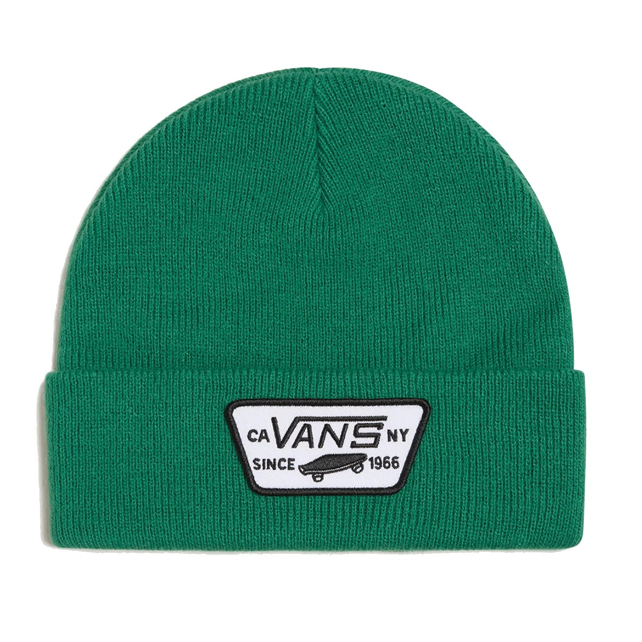 The Milford Beanie is a 100% acrylic cuff beanie with a Vans merrow-edged patch.