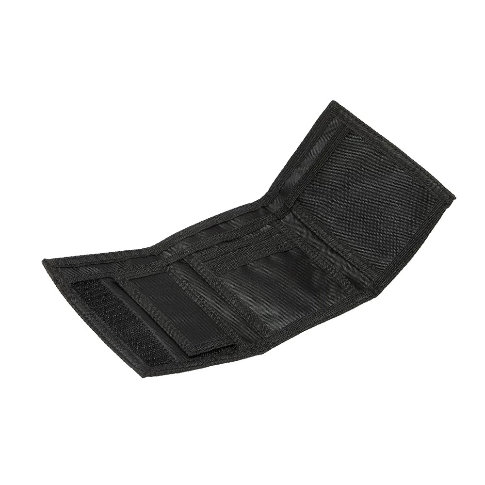 The Slipped Wallet is a 100% polyester tri-fold wallet with an allover checkerboard print. It features an ample billfold, card slots, an ID window, and a coin pocket.
