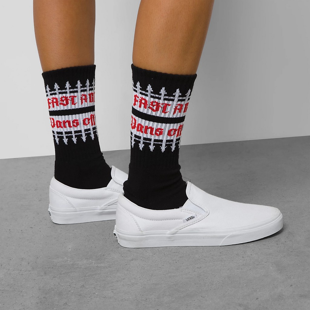 Exclusive FAST AND LOOSE jacquard art, the Vans x FAST AND LOOSE Crew Sock lives up to this intention with a top-of-foot mantra and graphic stripes around the calf. This sock is made with a cotton blend and classic ribbed texture.