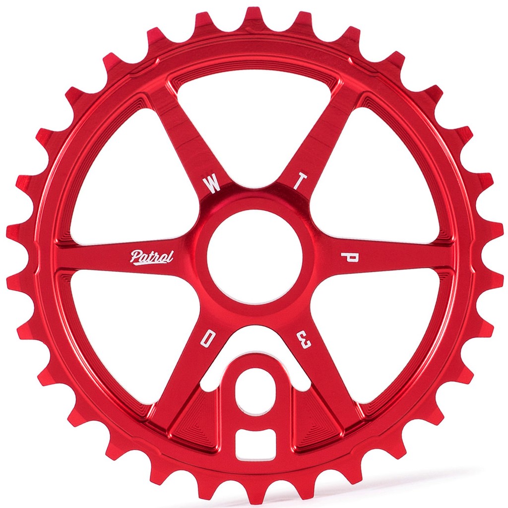 Wethepeople Patrol Sprocket- Κατασκευασμένος Full cnc 6061 T-6 αλουμίνιο σε αστεροειδή σχήμα αποτελούμενο από 6 ακτίνες! Με πάχος 6,35mm και καλύτερο offset η αλυσίδα πατάει καλύτερα στον δίσκο. Κουμπώνει σε όλους τους τύπους πεταλιέρας από 19mm / 22mm / 24mm χωρίς αντάπτορα!